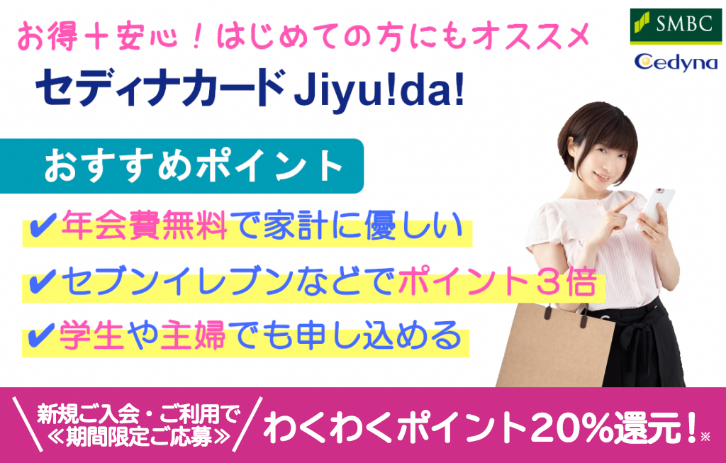 セディナカードJiyu!da!への新規ご入会+ご利用でわくわくポイント20%還元!(※最大10,000円相当)