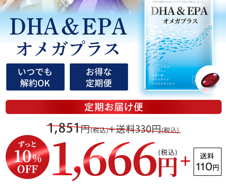 日本人に「1日【334mg】足りない」といわれる、サラサラ・いきいき成分の〈必須脂肪酸DHA&EPA〉。