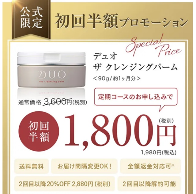 1人1セットのみ!初回定期半額のプロモーションならお得に試せる!