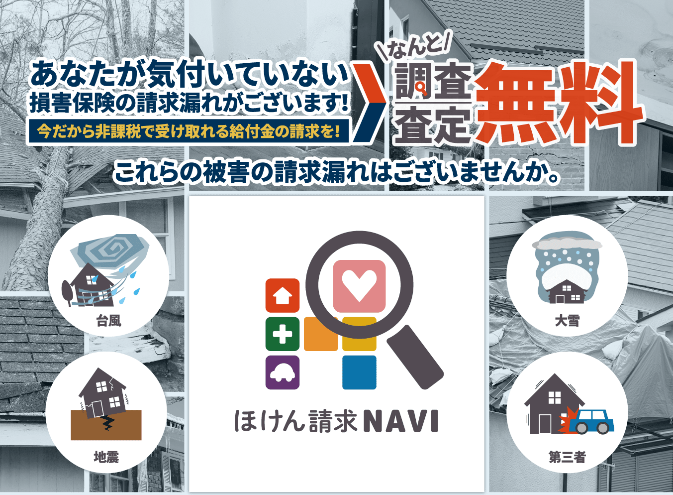 ※ほけん請求NAVIさんでは、築年数10年未満の物件、共済系保険の加入者はサービス対象外となっておりますのでご注意ください!