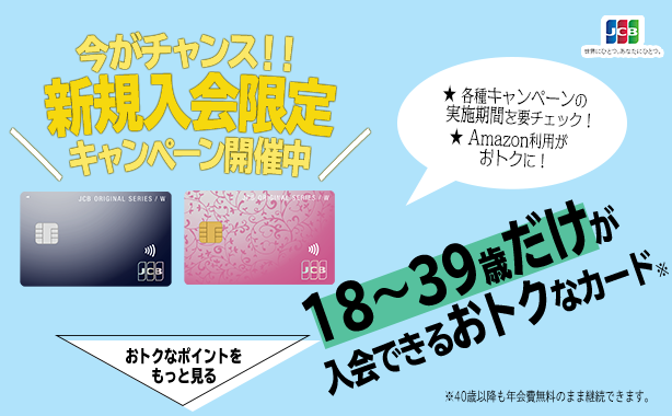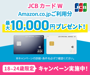 JCB CARD W & W plus Lは新規入会キャンペーン実施中!Amazon.co.jpご利用カードご利用合計金額の20%(最大10,000円)をキャッシュバック!!
