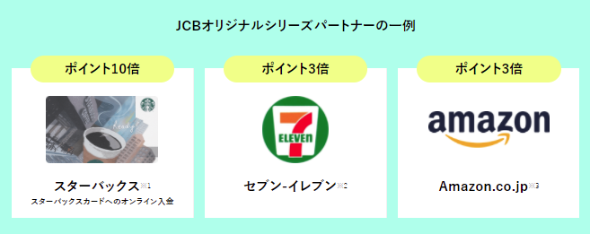 キャンペーン期間中でなくても、JCBオリジナルシリーズパートナーとなっているコンビニ・家電店などでは、ポイントが2倍~最大10倍!