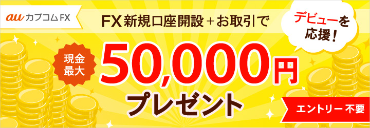 ※既に、証券総合口座などのauカブコムFX口座以外の口座を開設済みの方でも、auカブコムFX口座が未開設であれば対象となります