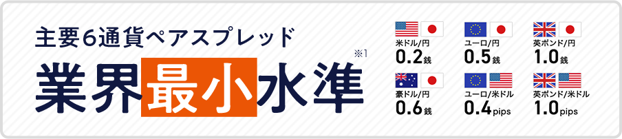 • 主要6通貨ペアスプレッド業界最低水準(※1)