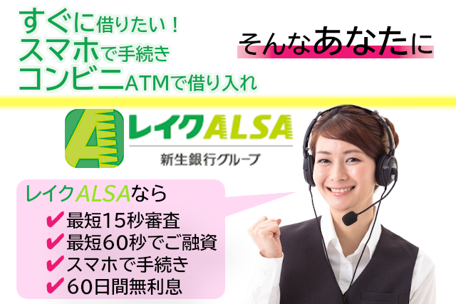 今すぐお金が必要ならレイクALSA!最短15秒審査&60分融資のカンタン借り入れ