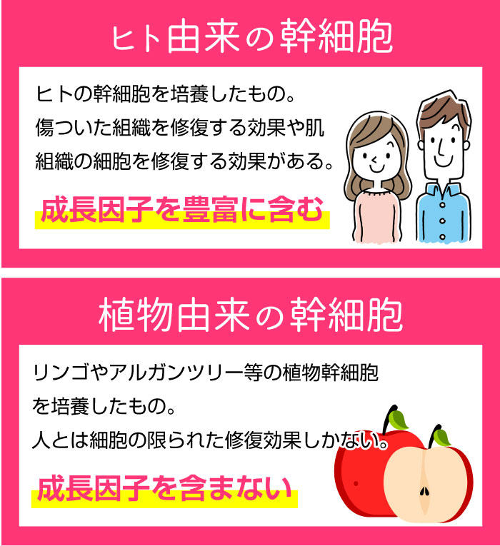 ヒト由来の幹細胞エキスなら、しっかりとヒトの肌を再生させる成長因子が含まれています!