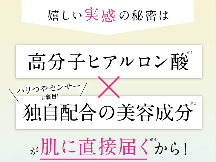 長い皮膚科学研究の成果として、ハリ・つやケアに役立つ、美肌の湯として有名な天然温泉にも含まれる整肌成分や、エイジングケア(※4)にうれしい天然植物エキスもたっぷり配合されています。