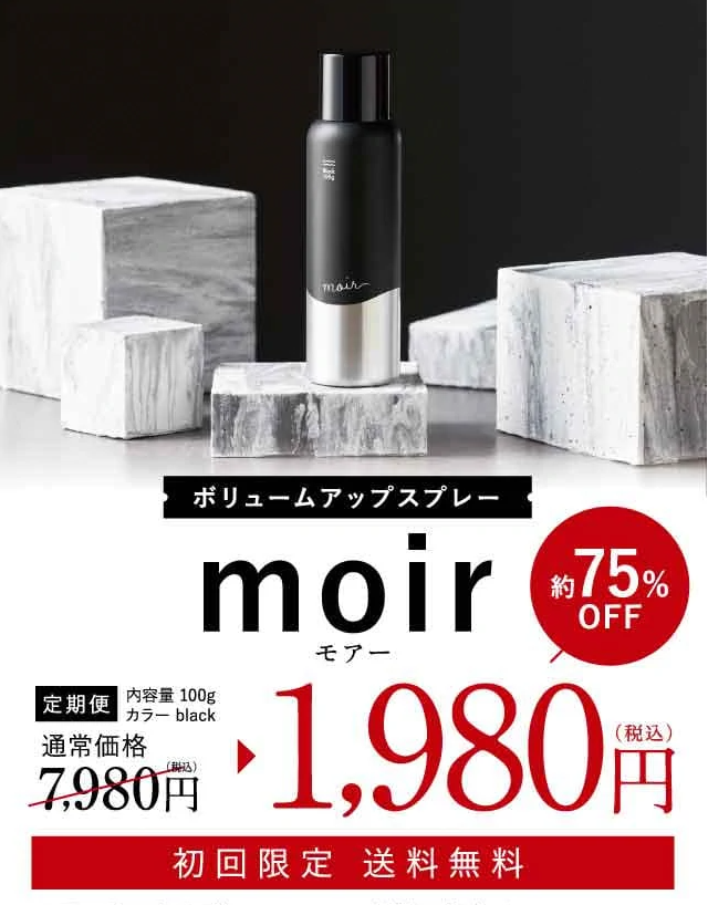 「moir(モアー)」は男性の長年の悩みだった薄毛を一瞬で隠すスプレー。