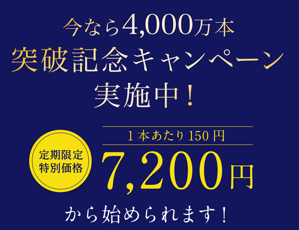 通常販売価格10,400円(税込)のところ……1本あたり【150円】定期限定特別価格 7,200円◢から始められます!