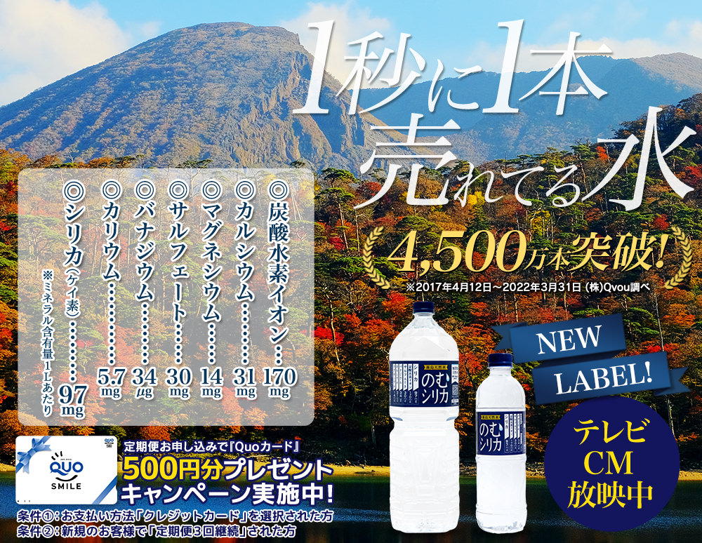 飲みやすい中硬水♪霧島天然水「のむシリカ」は、現在類家4,000万本突破記念キャンペーン実施中♪