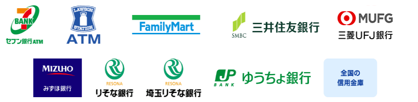 全国の金融機関、ゆうちょ銀行、お近くのコンビニなどで利用できます。