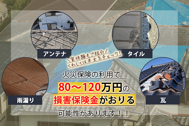 しかし、あきらめるのはもったいない! 火災保険の利用で80~120万円損害保険金がおりる可能性があるとわかっているのにみすみす逃す手はありません。