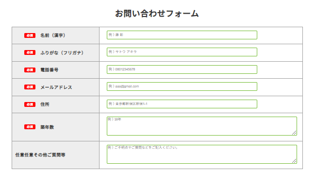 まずは、公式サイトのお問い合わせフォームに名前、連絡先の電話番号・メールアドレス、住所、家の築年数を入力して申し込みをします。