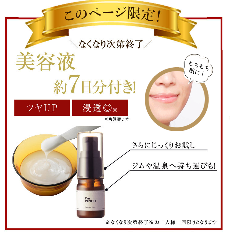 今なら持ち運びに便利な約7日分の美容液が無料で1本ついてくる!