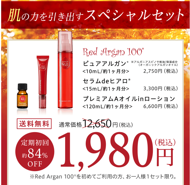 Red Argan 100のぜいたくな使い心地をぜひセットで実感したいという方のために、Web限定価格が実現しました。