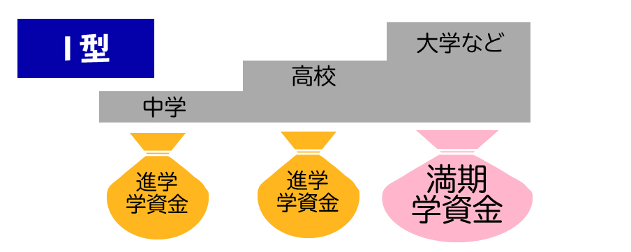 I型では、中学校・高校の入学費用と大学などへの進学時の教育資金を総合的に準備できます。