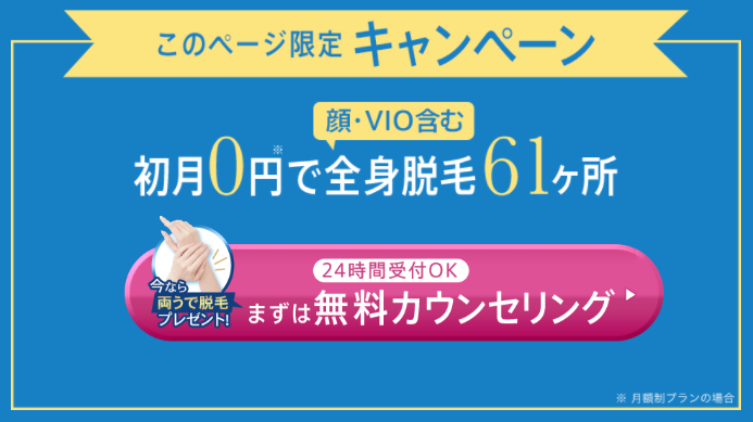 顔・VIO含む全身脱毛61ヶ所がなんと初月0円