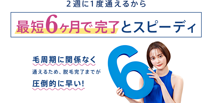 最短6カ月で全身脱毛完了(※2)