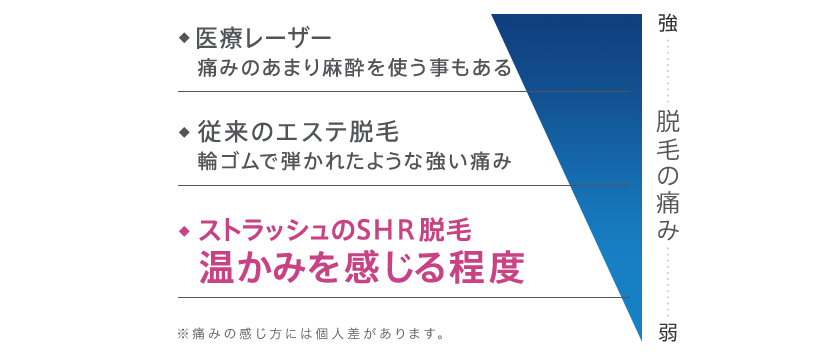 SHR脱毛は、ヘッド温度を冷たくキープできる連続冷却システムで、痛みが少ない!