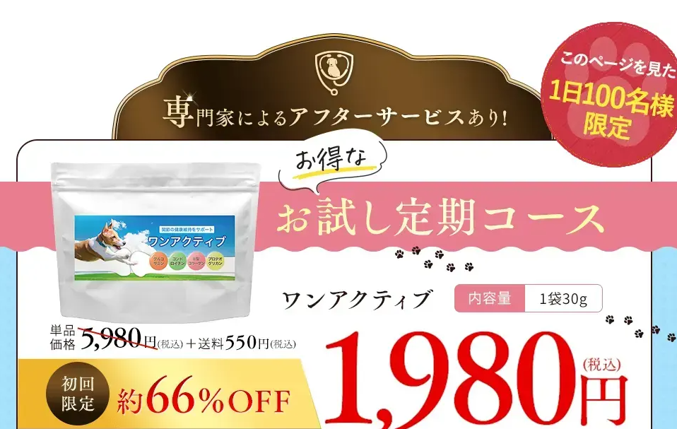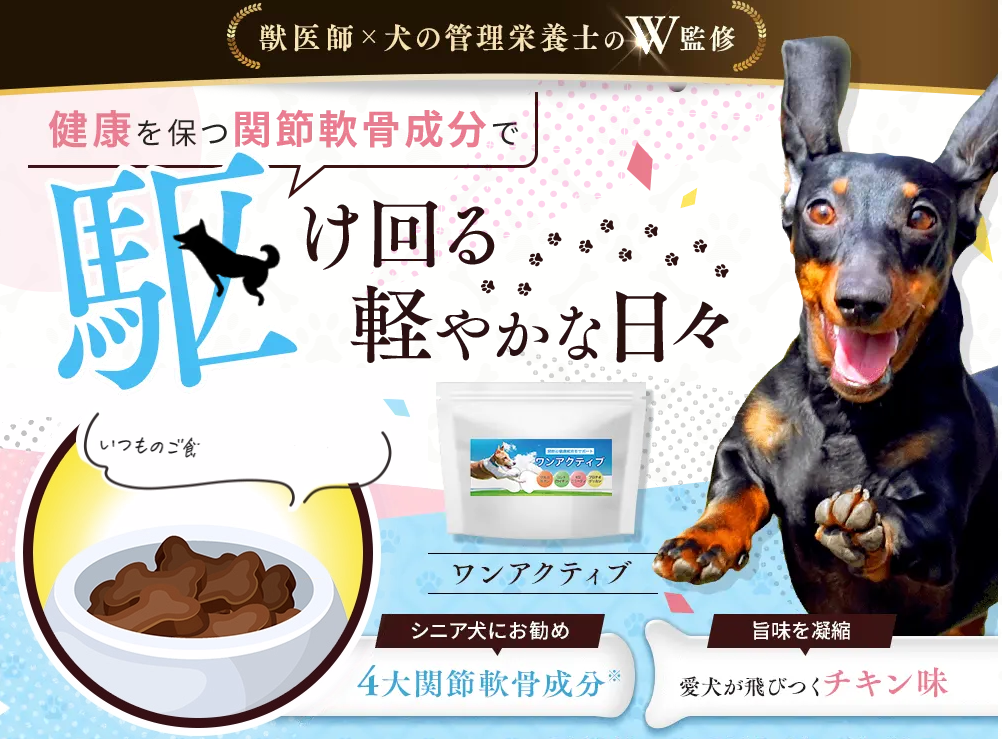 関節の健康維持に必要な栄養素をたっぷり詰め込んだ新サプリの「ワンアクティブ」は全犬種・全年齢OKのサプリメント。
