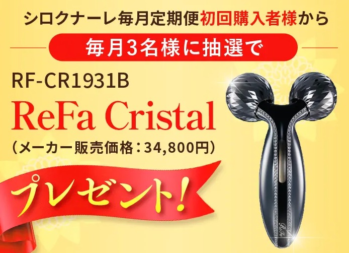 毎月定期便を初めて購入される方のなかから毎月3名様に、ブルドレナージュローラー「ReFa Crystal」(メーカー販売価格:34,800円)が抽選で当たるチャンス!